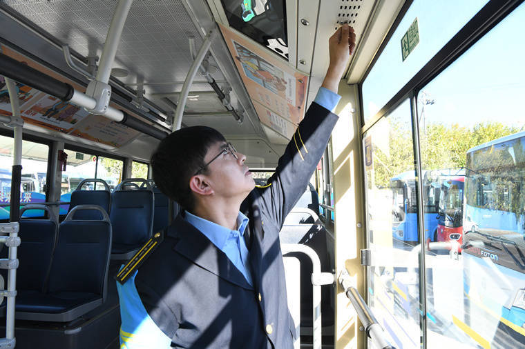 公交工作人员提前开启车厢暖风。受访方供图