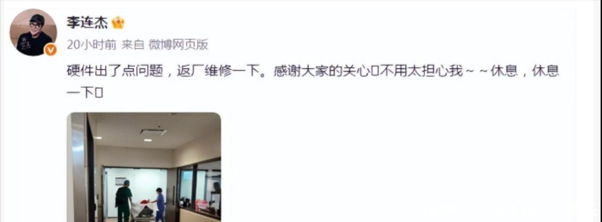 正当大家以为剧情会就这么沉重地继续下去时,剧情反转得出乎意料,而且速度之快,简直比龙卷风还猛烈。前段时间刚刚做完手术的李连杰,竟然突然像变了个人一样。他自己说只是“硬件”出了点小毛病,不过,从照片上那条插管缠绕在脖子上的画面来看,还是挺清楚的吧,看上去明显很虚弱。