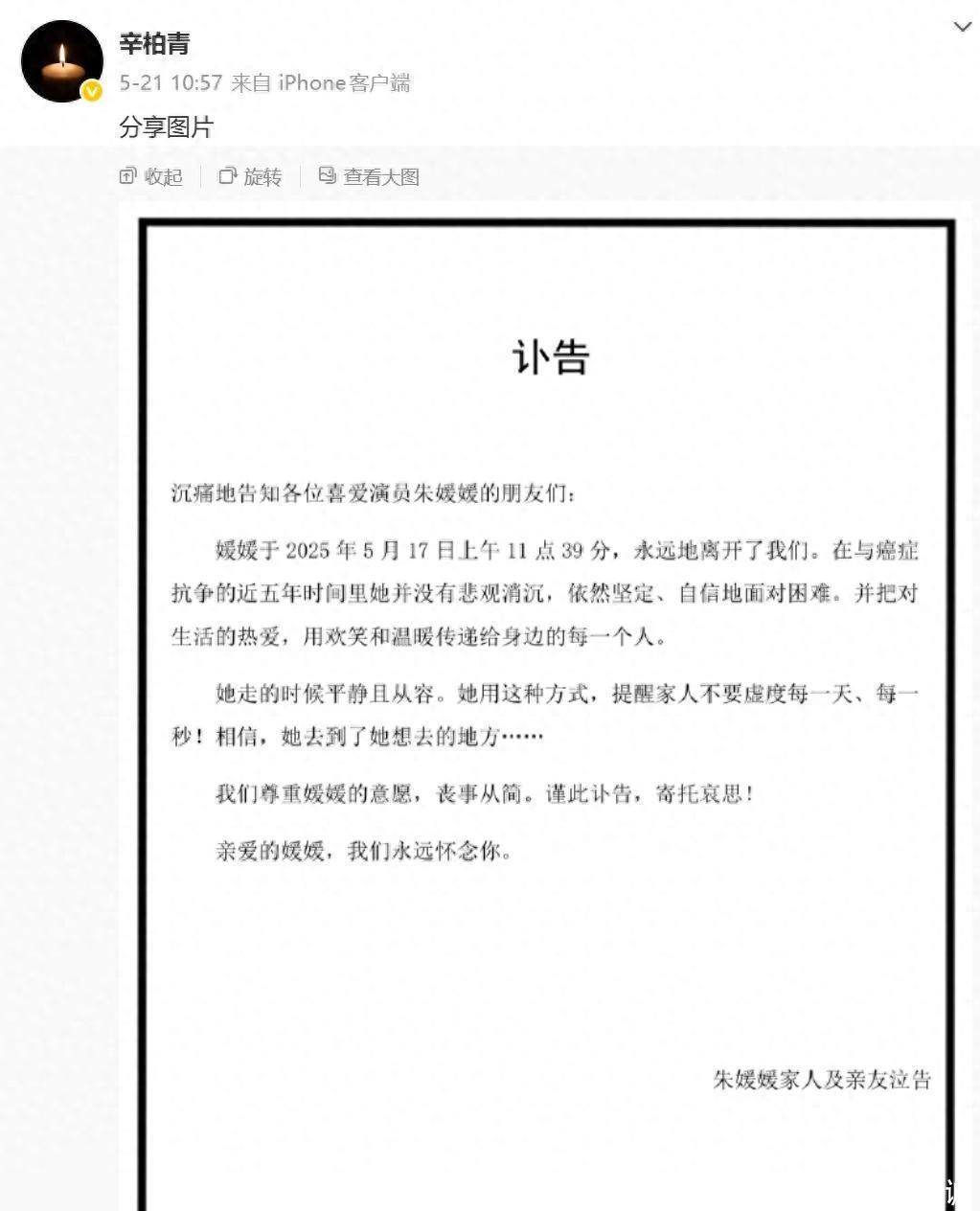 自从朱媛媛5月17号离世之后,辛柏青的社交动态一直停留在5月21号伍祥配资,这是他发布讣告的那一天,那天他把头像改换成黑暗中的蜡烛,到现在仍旧保持原样。
