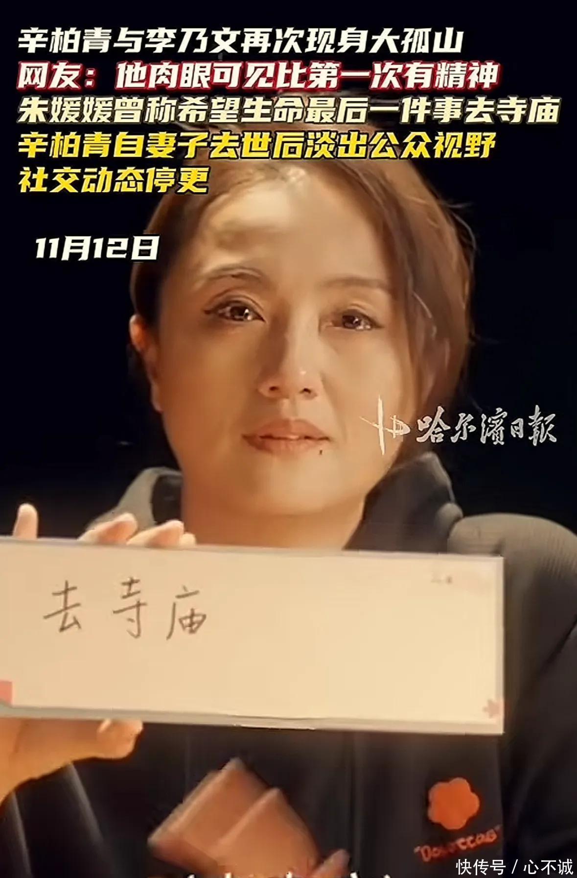 所幸,大家发现辛柏青的精神状态好多了,虽然还是穿着一身黑,连口罩也是黑色,但是看他走路的姿态,与路人互动合影的样子,都能感觉到他“活”过来了。原来朱媛媛曾经说,希望生命的最后一件事是“去寺庙”,而她因为病情加重癌痛缠身,想必当时是未能成行的,所以辛柏青才会带着女儿以及挚友,两次前往大孤山,完成朱媛媛的遗愿。